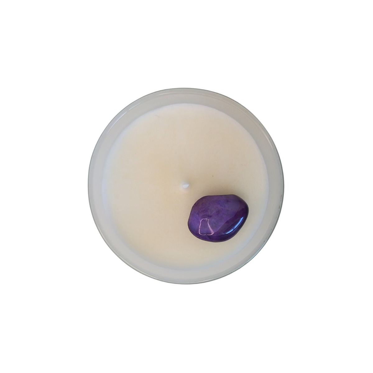 La présence d’une pierre semi-précieuse d’agate violette ajoute une dimension spirituelle et bienfaisante. En lithothérapie, cette pierre est connue pour harmoniser les énergies, renforcer la confiance en soi et favoriser un équilibre émotionnel. Ce mariage subtil entre douceur olfactive et bien-être énergétique en fait une bougie de premier choix.