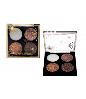 Palette pailletée rouge, composée de 20 teintes pour les paupières en harmonie avec le blush et l'highlighter. Création one shot night and day.