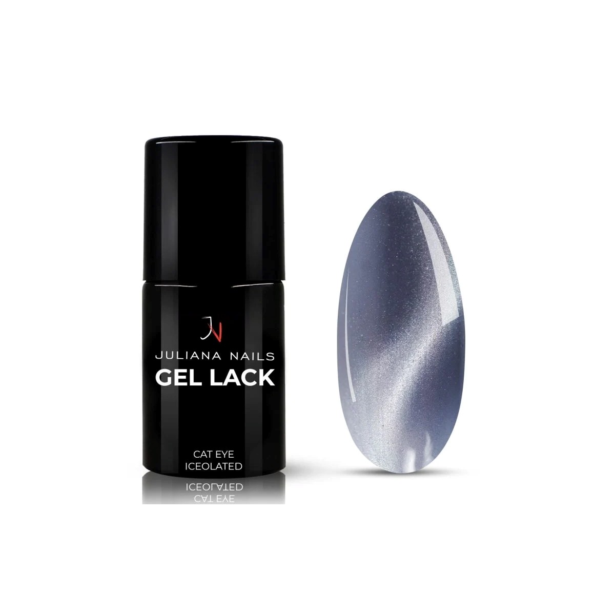 Notre vernis gel Cat Eye Iceolated est un gris-bleu foncé moderne aux pigments délicats et scintillants .