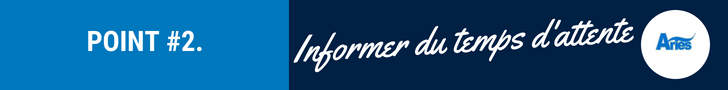 Si votre établissement ne propose pas de rendez-vous, vous devez donner une fourchette de temps réaliste quant au temps d’attente prévu. Ne cherchez pas à minimiser ce temps d’attente car cela créerait de la frustration.