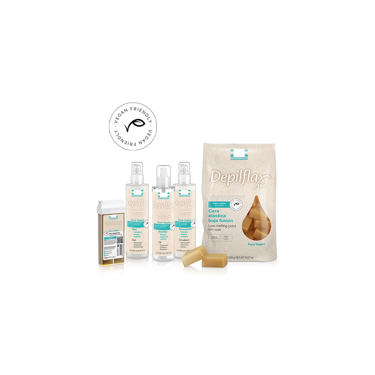 Combinaison de cires et huiles végétales (Tournesol, Olive, Soja) qui, associée à la résine, confère à cette cire basse température une texture et une viscosité pour une épilation parfaite. Elle contient également du Beurre de Karité, aux propriétés hydratantes et émollientes qui apportent douceur et souplesse à l'épilation.