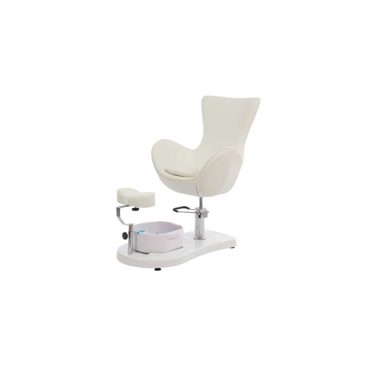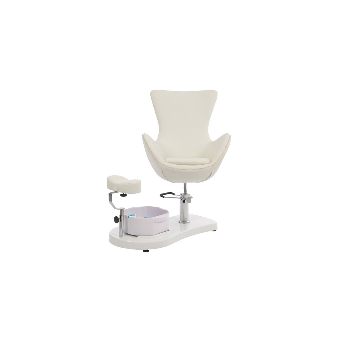 Fauteuil pivotant afin que la cliente puisse s’installer facilement et réglage en hauteur par pompe hydraulique avec système de blocage. Repose-pied également réglable en hauteur et en profondeur afin de s’adapter à toutes les morphologies. Cuve d'une capacité de 10 litres et amovible afin d’être remplie et vidée facilement. Ne nécessite pas d’installation électrique ou d’arrivée d'eau.