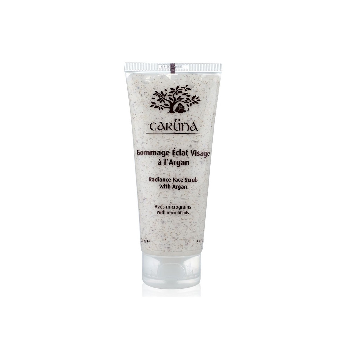 Gommage Eclat Visage, fines particules exfoliantes de Noyaux d’Abricots et Noix d’Argan qui élimine en douceur les cellules mortes et impuretés.