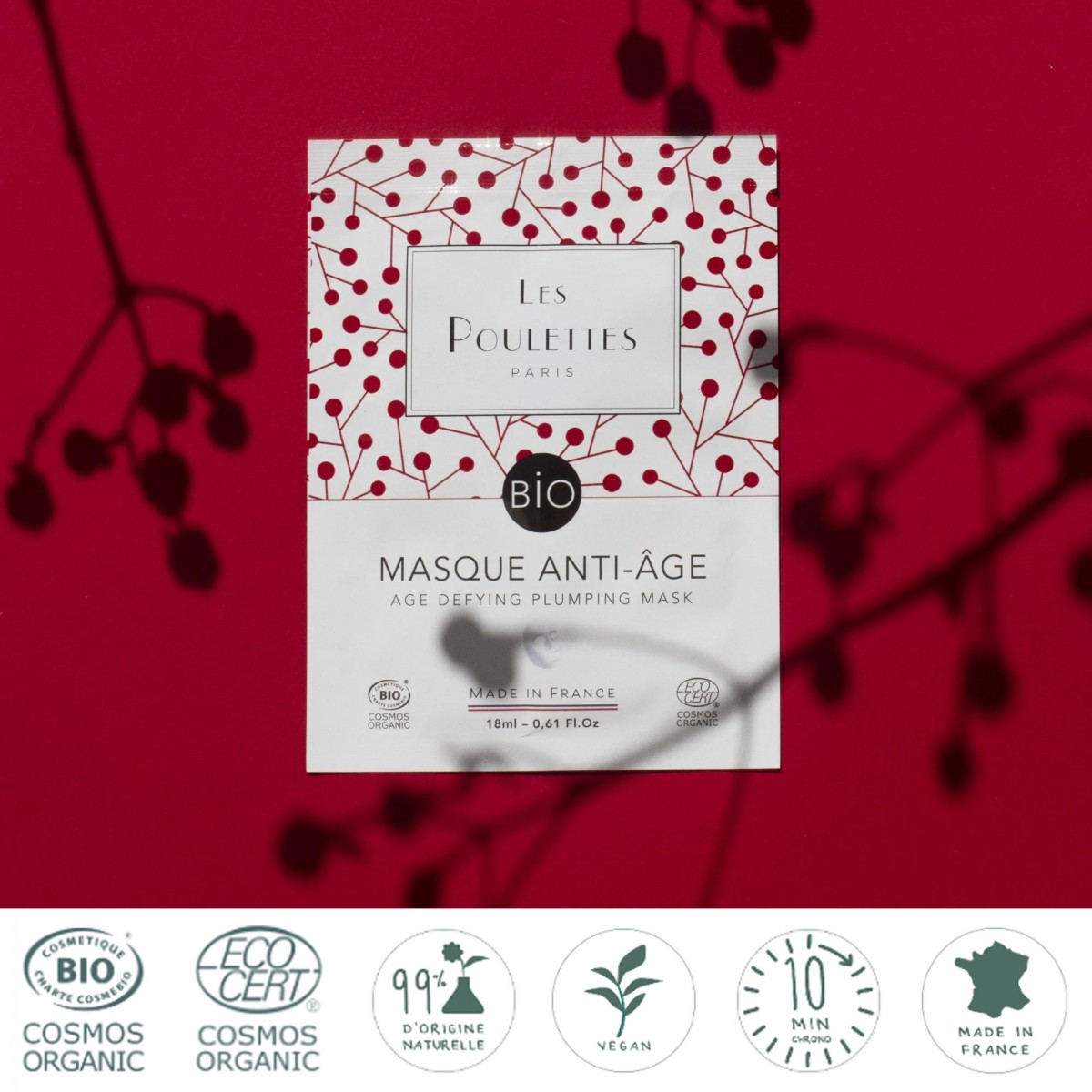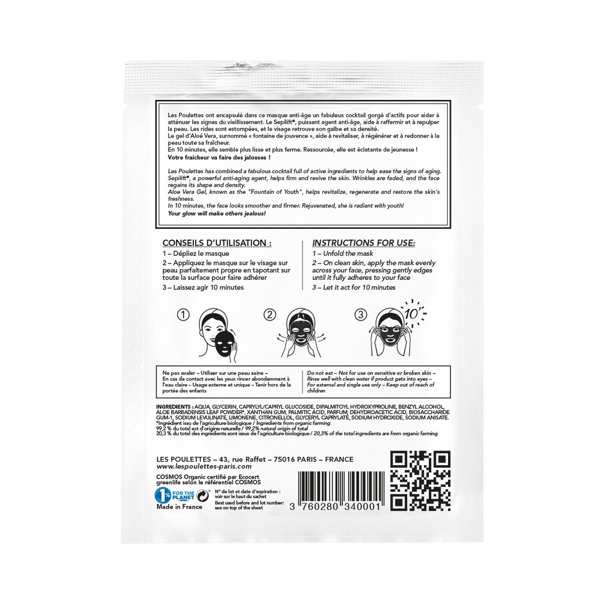 Les Poulettes ont encapsulé dans ce masque bio Anti-Age un fabuleux cocktail gorgé d’actifs pour aider à atténuer les signes du vieillissement.