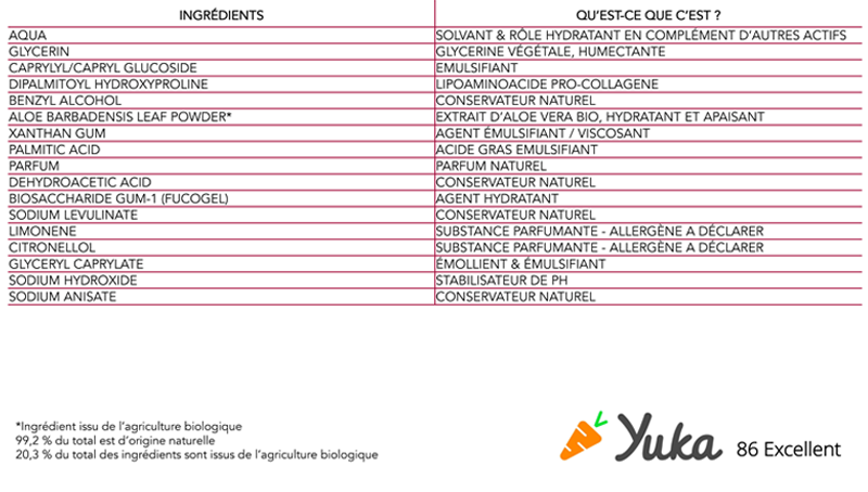 La recette : des molécules biotechnologiques à l’action procollagène et proélastine + du gel d’Aloé Vera + des acides gras végétaux pour aider à revitaliser, à régénérer, et à redonner toute fraîcheur à la peau.