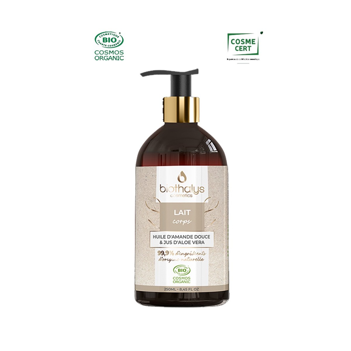 Enrichi en huile d’amande douce BIO utilisée pour ses propriétés nourrissantes et protectrices,et en Jus d’Aloe vera BIO qui hydrate votre peau