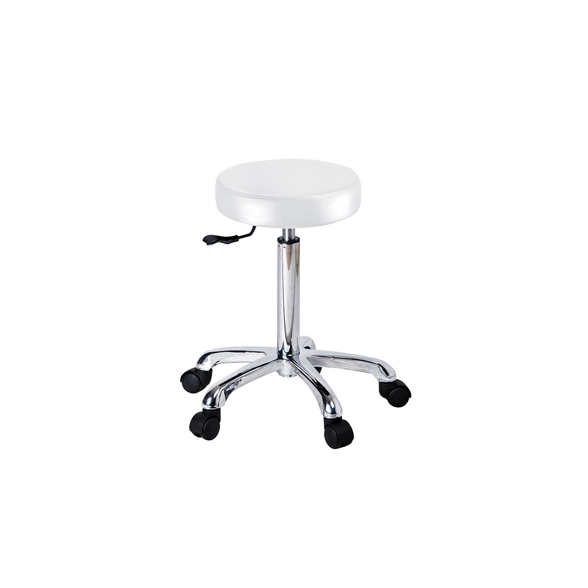 Tabouret sur roulettes, réglable en hauteur par vérin à gaz, sans dossier.